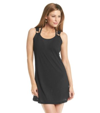 Cover Ups. Cute and comfy, this casual dress from J. Valdi is the perfect way to bring your beach look to the boardwalk. Featured in black Swim coverup Dress style Scoopneck Sleeveless Ring detail in straps Ribbed texture allover Polyester ImportedUSD 21.99